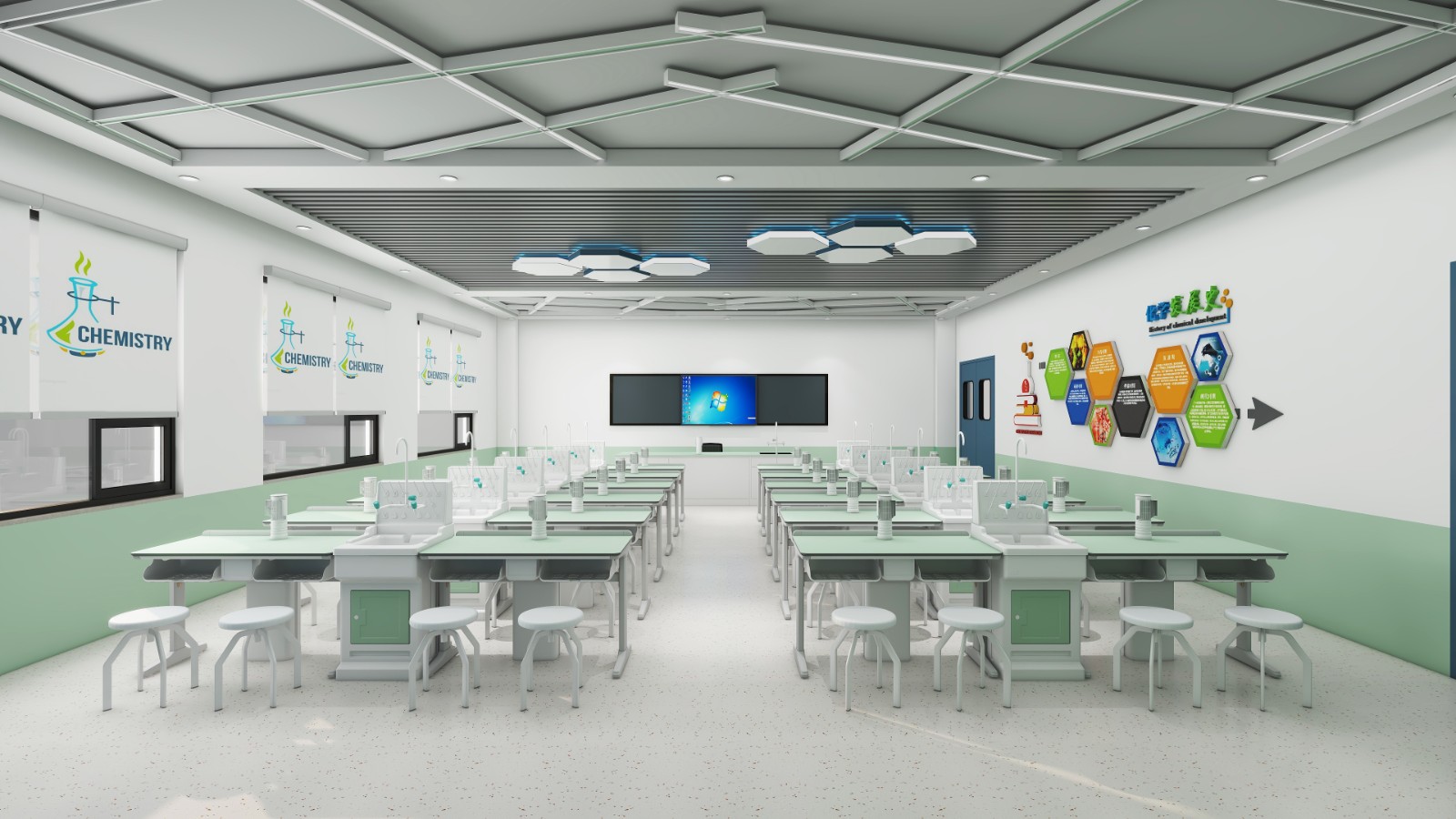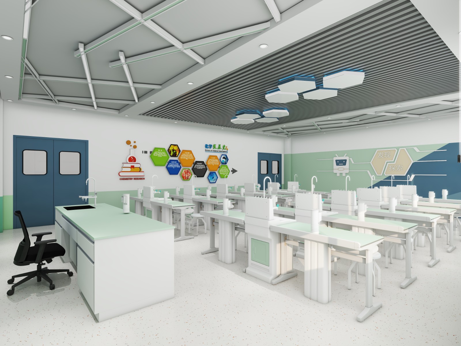化學實驗室以滿足《教學大綱》里實驗教學和老師演示實驗而建設,不僅滿足授課需求,還可滿足多人教學實驗,提供實驗所需的水、電、風。