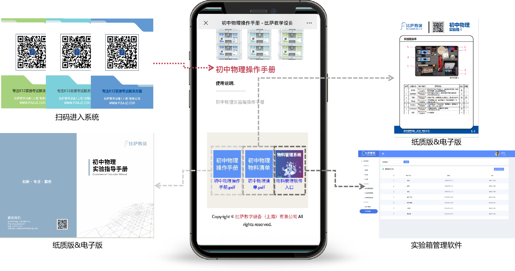 為滿足現(xiàn)代教學(xué)對(duì)于便捷與高效的需求,比薩為實(shí)驗(yàn)箱設(shè)計(jì)研發(fā)一套管理系統(tǒng)。該系統(tǒng)為用戶提供了一鍵掃碼的便捷功能,讓實(shí)驗(yàn)員老師能夠輕松查看實(shí)驗(yàn)箱清單、操作手冊(cè),并方便進(jìn)行數(shù)據(jù)的錄入與清單的導(dǎo)出,極大地提升了工作效率。