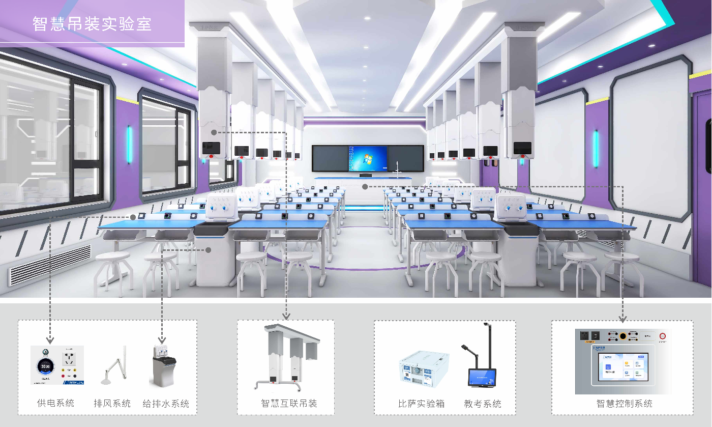 智慧互聯(lián)實(shí)驗(yàn)室整體解決方案嚴(yán)格遵循中學(xué)實(shí)驗(yàn)室建設(shè)標(biāo)準(zhǔn)設(shè)計(jì)規(guī)劃,在滿足學(xué)科實(shí)驗(yàn)所需的實(shí)驗(yàn)桌、供水、供電、排風(fēng)設(shè)備等基礎(chǔ)條件外,創(chuàng)新性地融入了萬(wàn)物互聯(lián)理念。其智慧吊裝設(shè)備不僅能滿足實(shí)驗(yàn)基礎(chǔ)所需的水、電、風(fēng)供給,還可實(shí)現(xiàn)傳感器、顯微鏡數(shù)據(jù)可視化。學(xué)生在實(shí)驗(yàn)過(guò)程中能實(shí)時(shí)獲取這些關(guān)鍵實(shí)驗(yàn)數(shù)據(jù),及時(shí)進(jìn)行分析與總結(jié),大大增強(qiáng)實(shí)驗(yàn)的直觀性與科學(xué)性,幫助學(xué)生更好地理解實(shí)驗(yàn)原理與知識(shí)。